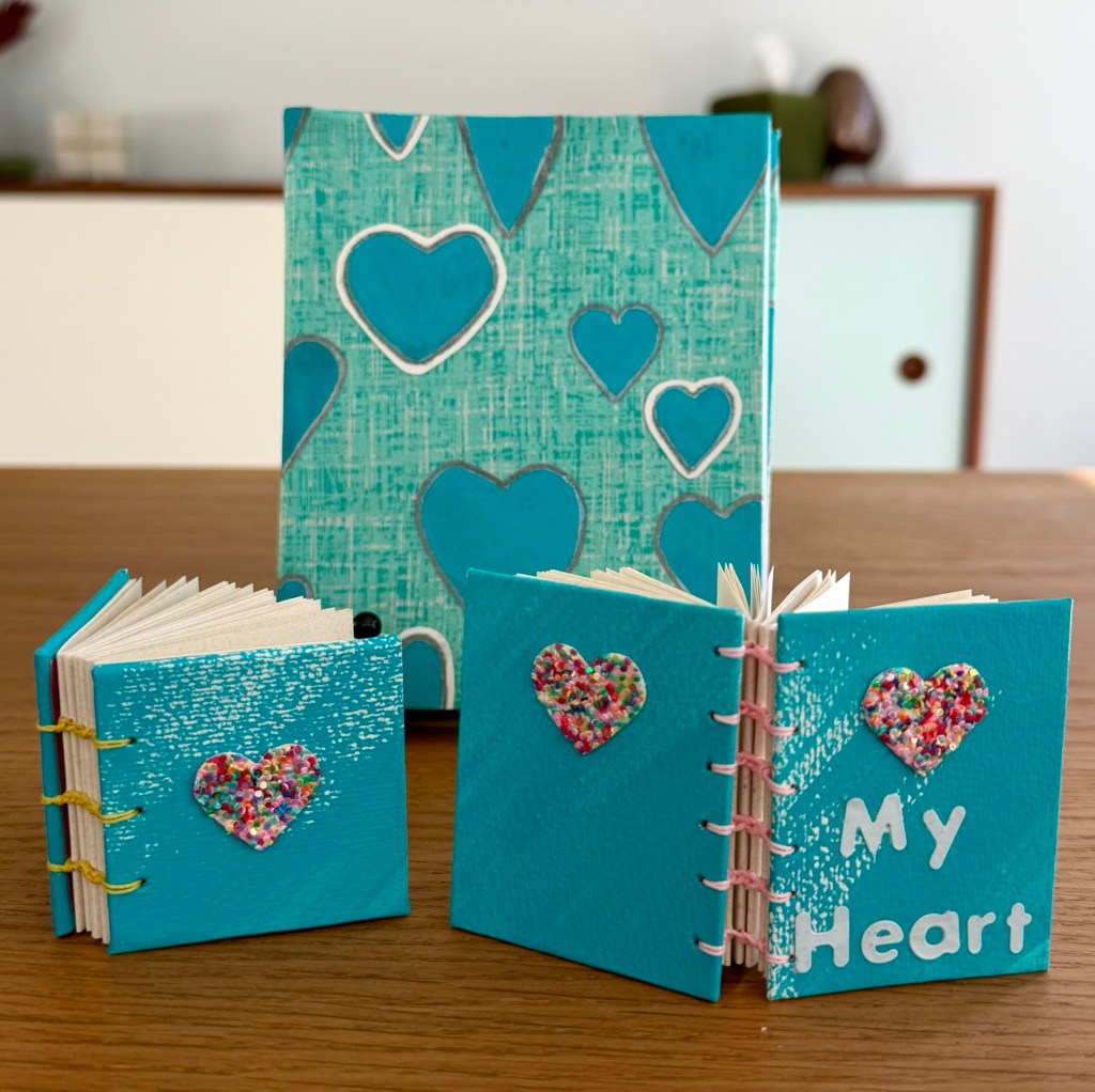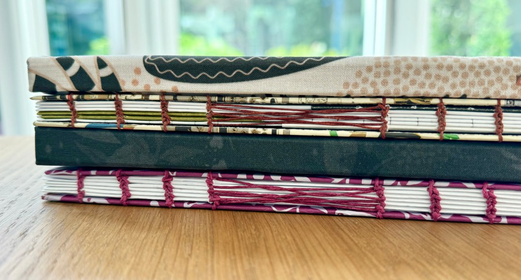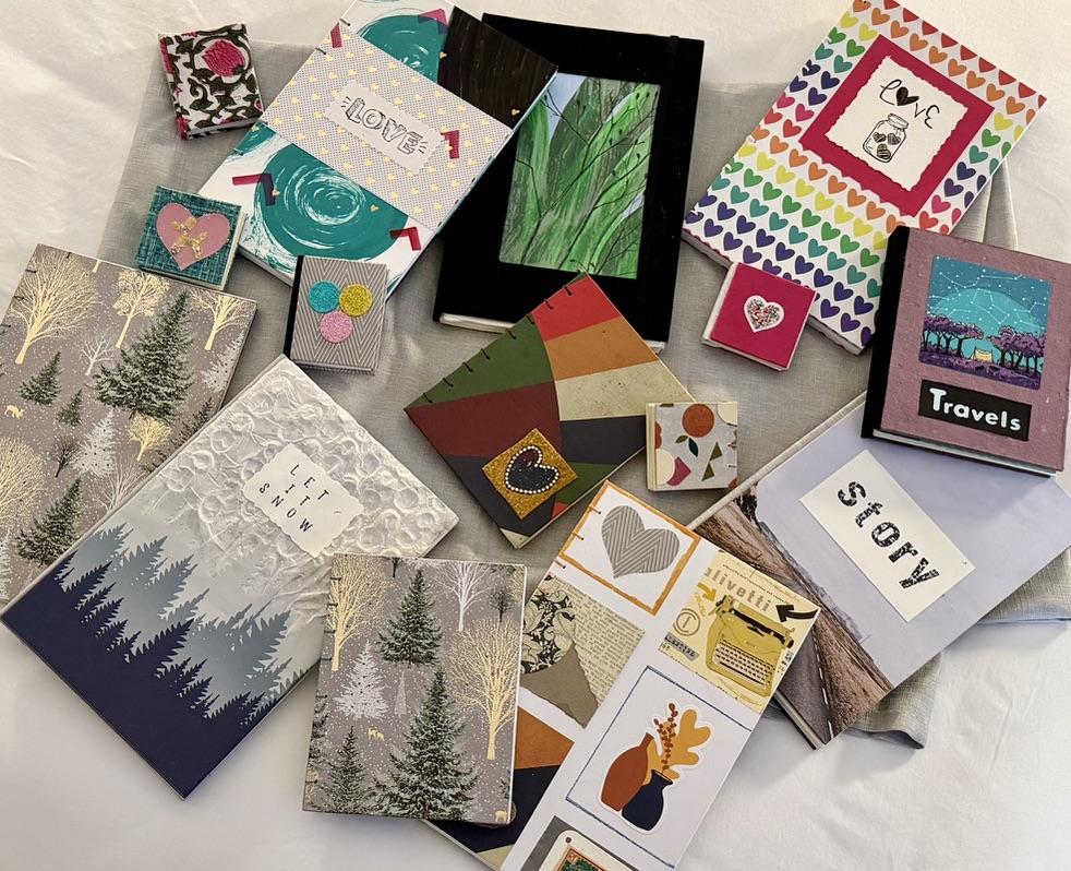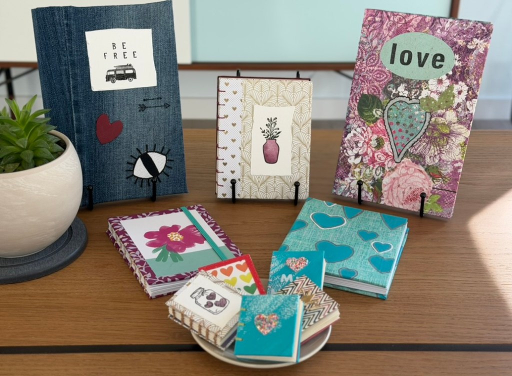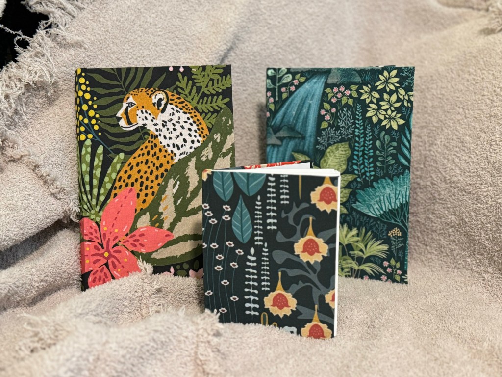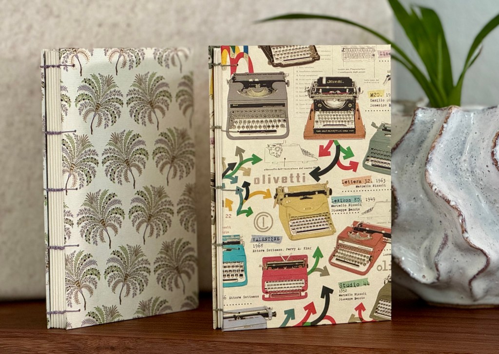 Hand made journals. Hard cover and soft cover, bound and coptic stitched. Covered in either fabric or paper. Theme, color and style customizations are possible.